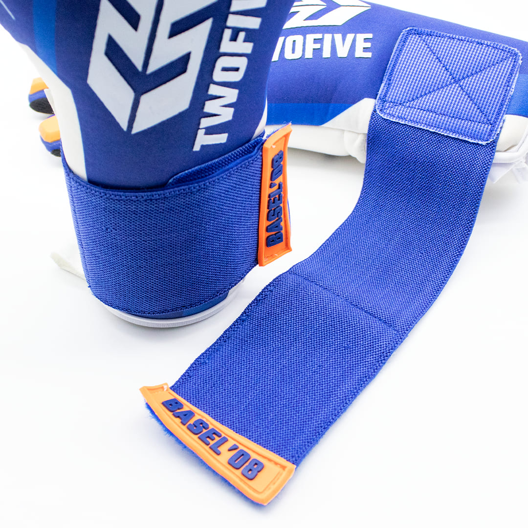 Elastic strap with two anchor points. Elastic wristband that fits perfectly around the wrist. Includes a full-wrap closure strap, optional for goalkeepers who require a tighter fit.