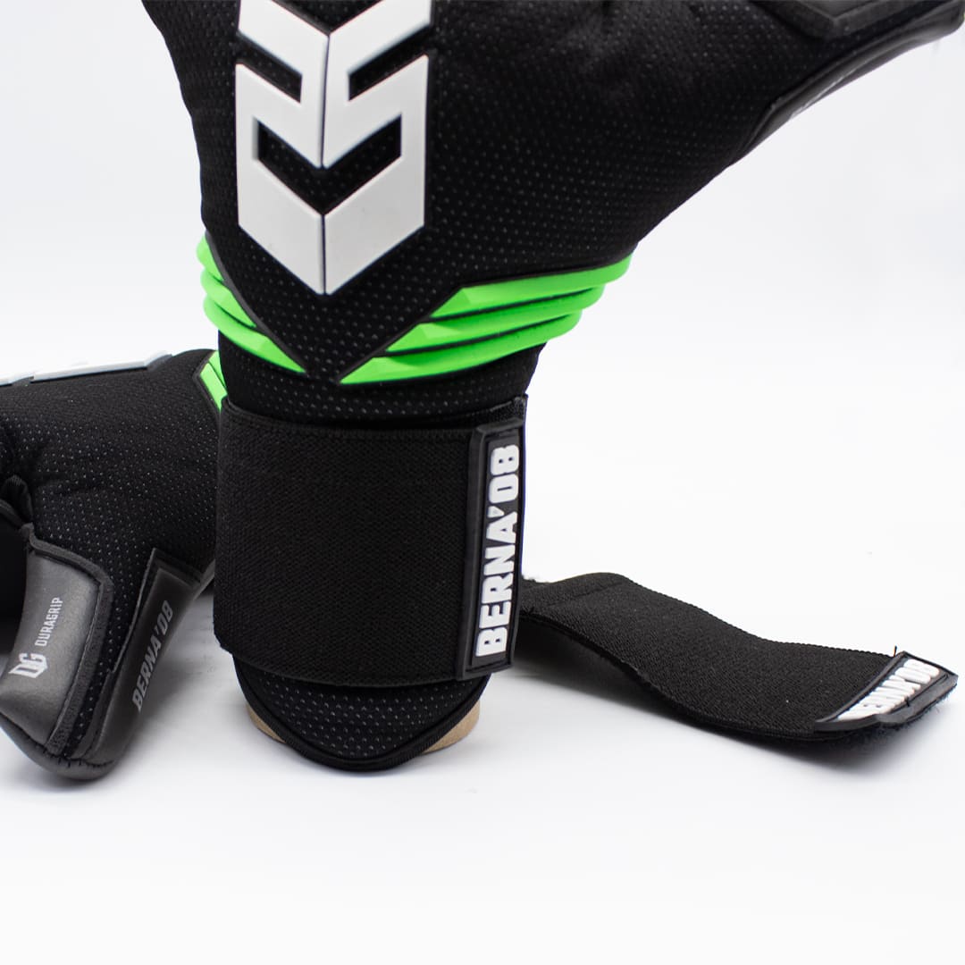 Optional elastic strap with two anchor points. Elastic wristband that perfectly fits the contours of the wrist. Includes an optional full-wrap closure strap for goalkeepers who require a tighter fit.